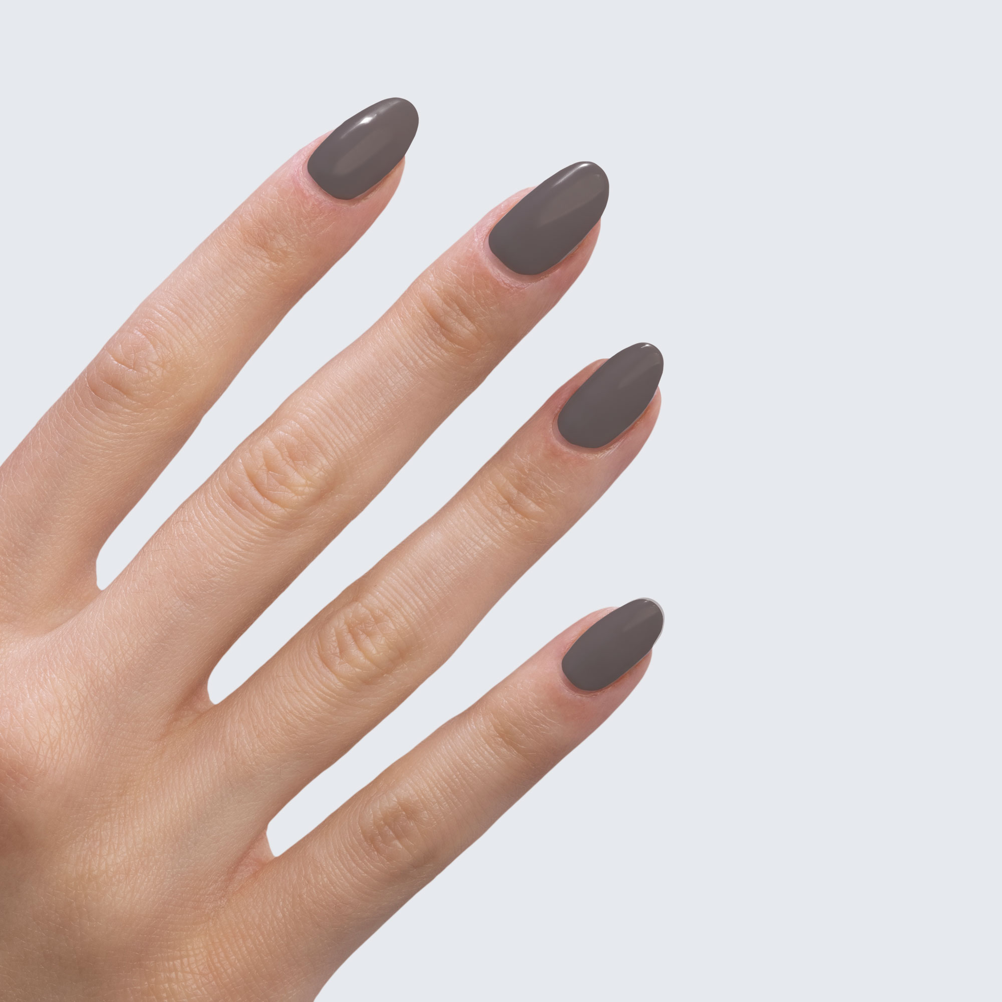 Taupe grey. Medium-dark. Opaque. Warm undertone.